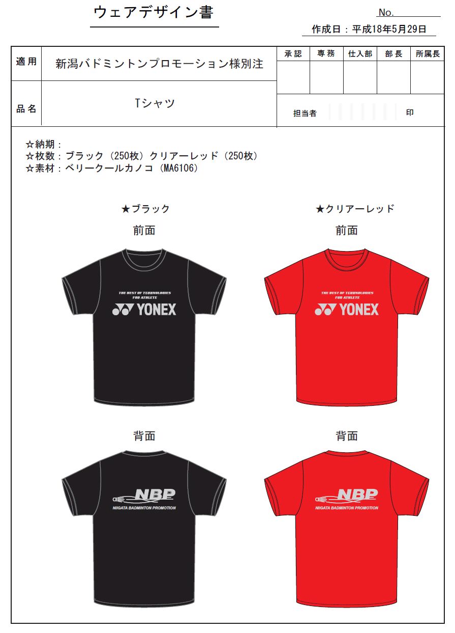 赤・黒 各2500円 申込締め切り9/3(会長杯当日まで)・・・ですが、数量限定生産の為、売り切れましたらご容赦下さい。 必要事項を申込書に記載の上e-mailにてお申し込み下さい 代金はTシャツお渡し時、または郵送代引(別途実費送料必要)も承ります。
