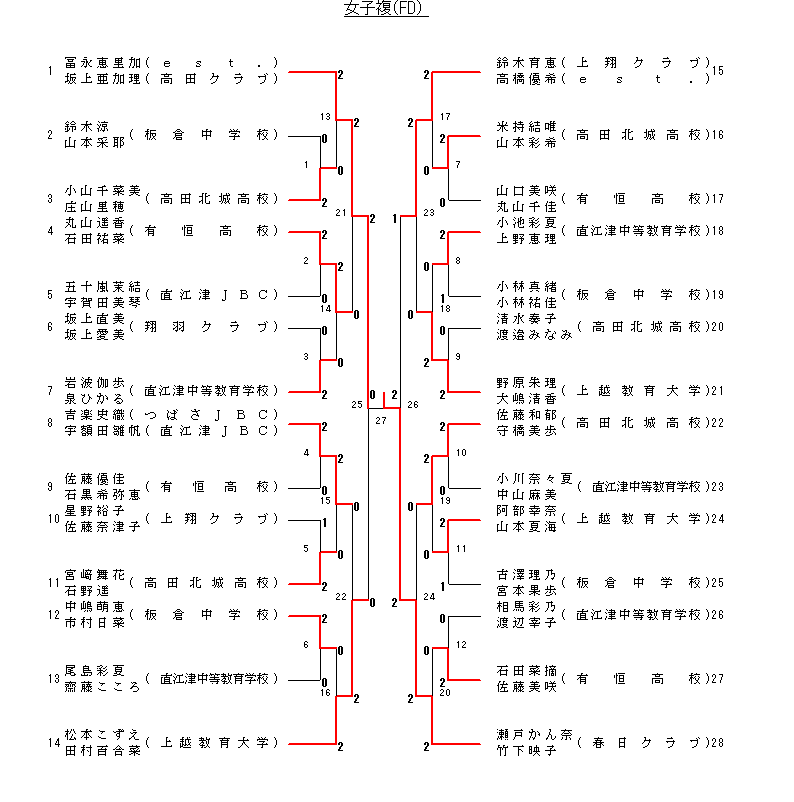 | 13 2回戦 | 馬場智奈未 白木文菜(直江津中等) | 棄権 | 藤井美優 笠原綾乃(新井高校) |