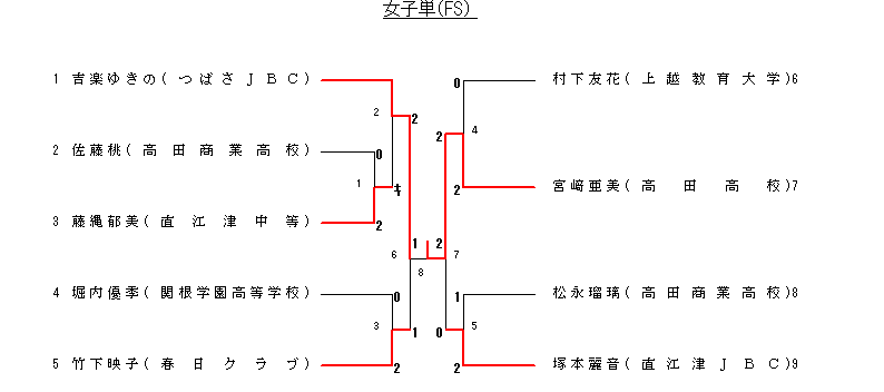 | 8 決勝 | 宮ア亜美(高田高校) | 2-1 | 吉楽ゆきの(つばさJBC) |