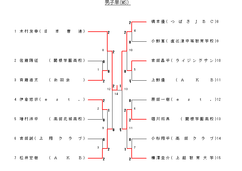 | 14 3回戦 | 松井宏樹(ライジングサン) | 2-0 | 橋本謙(高田北城高等学校) |