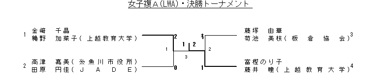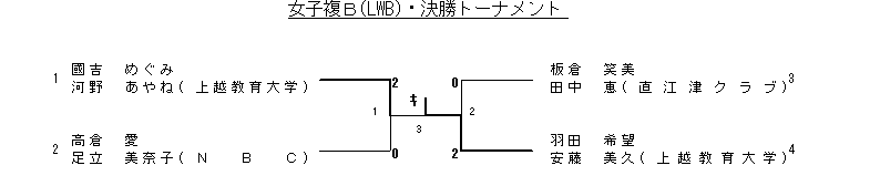 | 2 | 富樫のり子 藤井 瞳(上越教育大学) | 2(11- 5 11- 2)0 | 豊岡 琴美 峰村 育恵(板倉協会) |