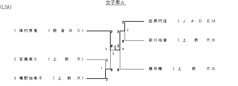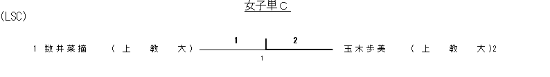 | 1 1回戦 | 穐野加菜子 (上教大) | 2( 9- 6 5- 9 9- 5)1 | 安藤美久 (上教大) |
