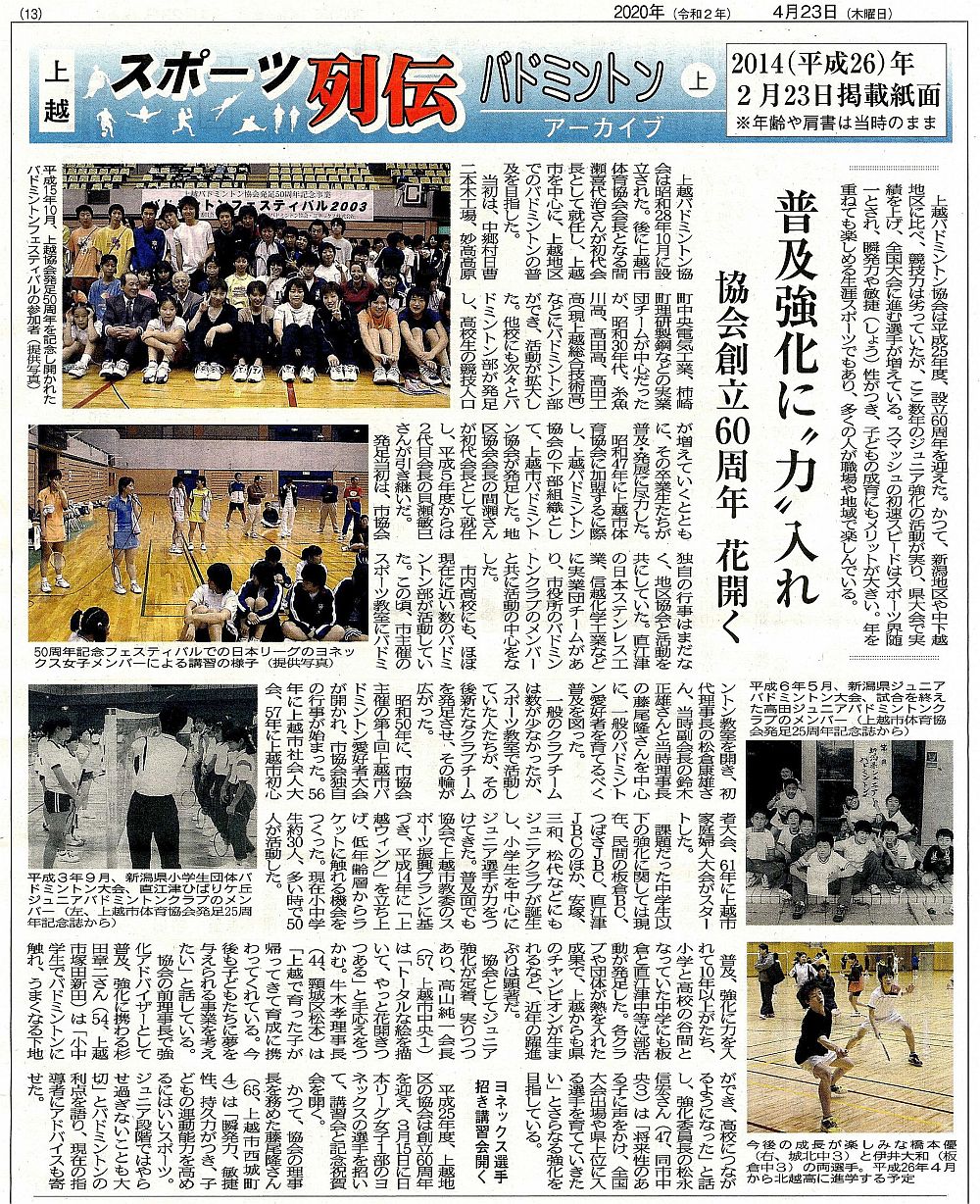 上越タイムス「スポーツ列伝」