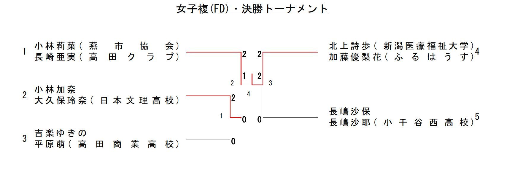 | 長嶋沙保・長嶋沙耶 | * | 2-0 | 2-0 | 2 - 0 | 1 |
