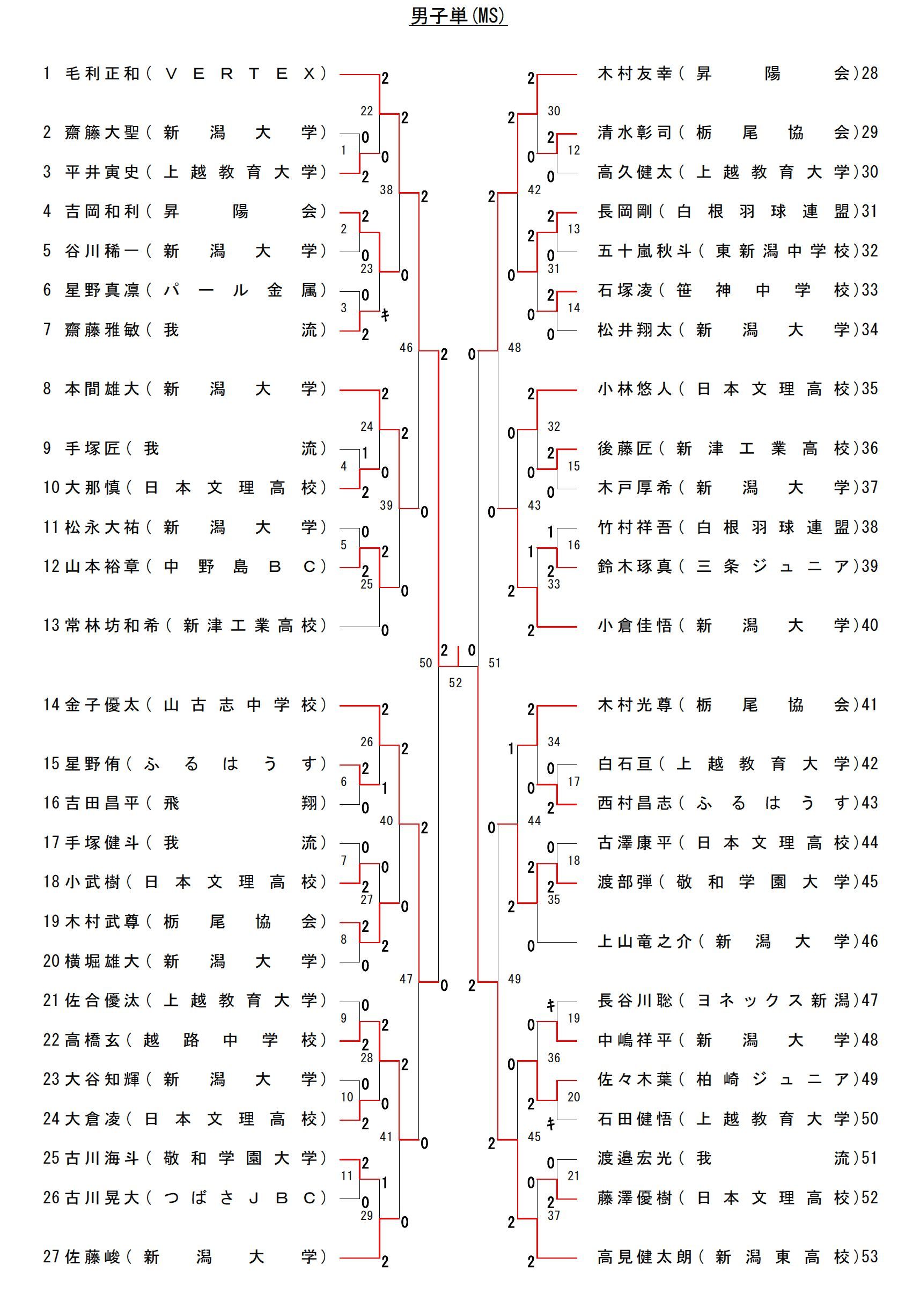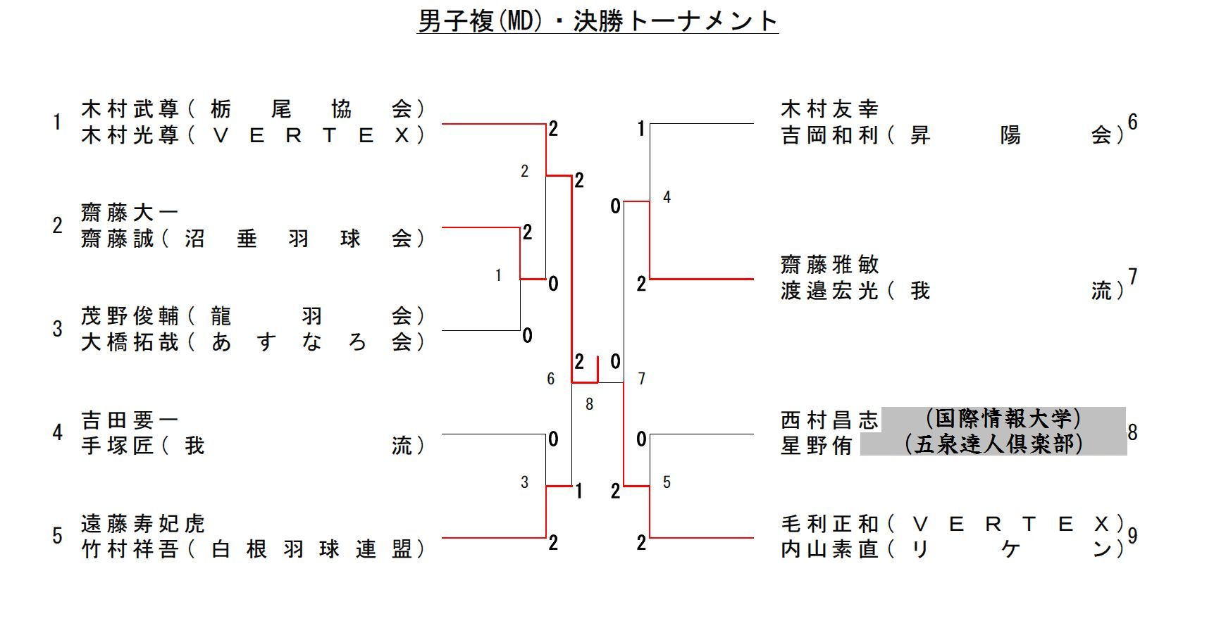 | 齋藤大一・齋藤誠 | * | -キ | 2-0 | 2 - 0 | 1 |